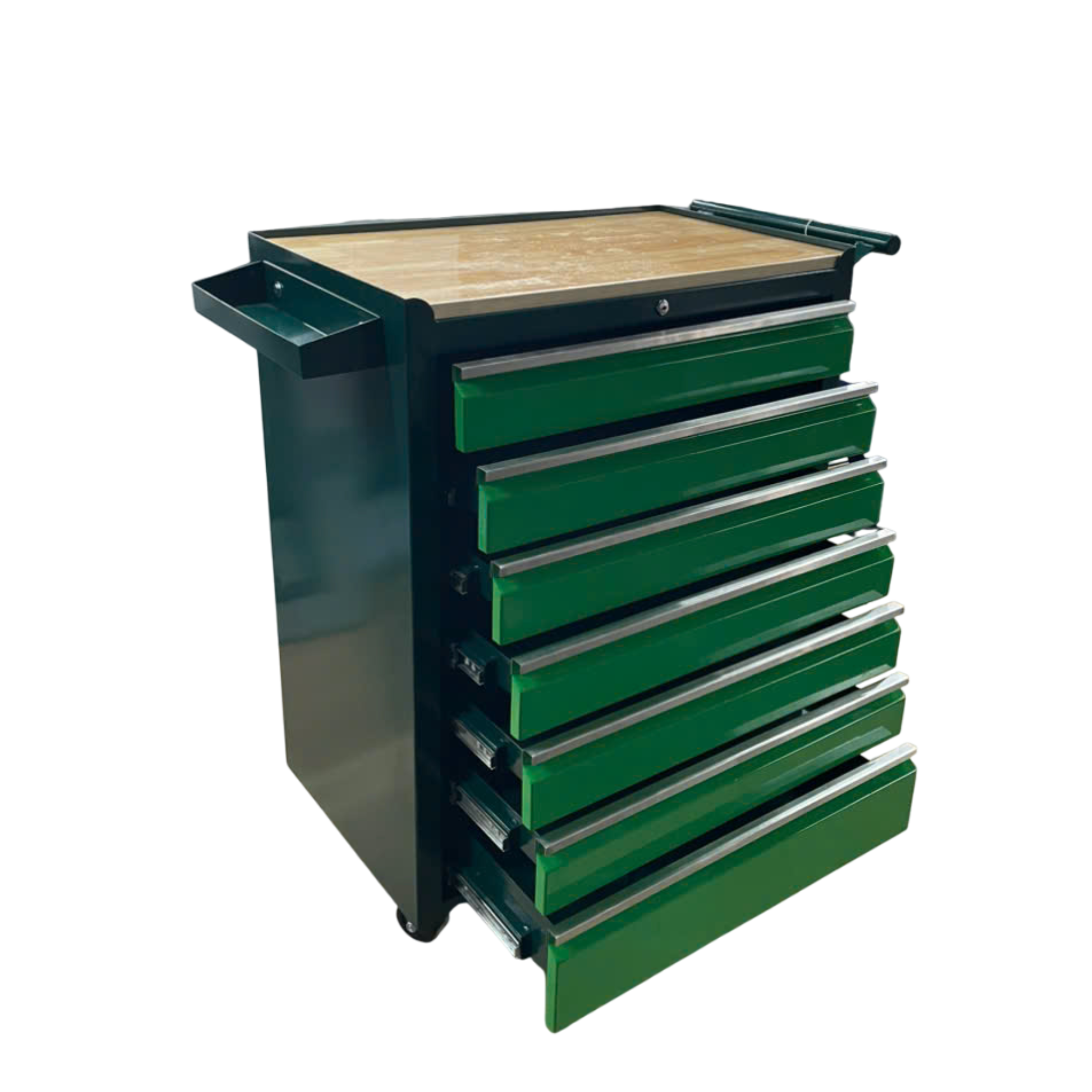 Hệ thống 07 ngăn kéo khoa học: Trang bị ray trượt Hafele, kéo mở nhẹ, êm, bền. Dễ phân loại và sắp xếp dụng cụ gọn gàng, tránh thất lạc.