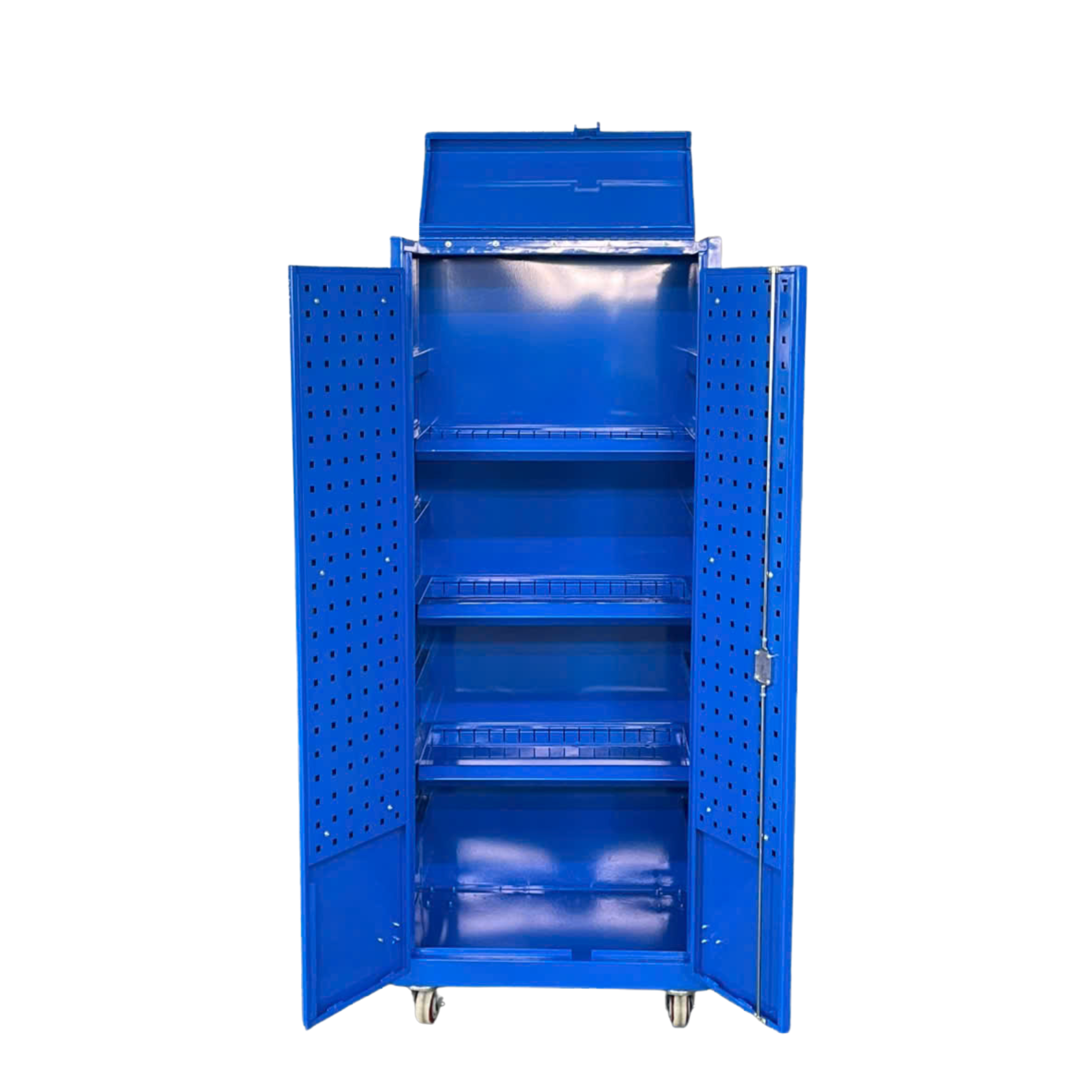 Mở rộng không gian treo dụng cụ: Hai cánh tủ đột lỗ treo đồ, kết hợp 2 hộp đựng vật tư nhỏ, tối ưu không gian, dụng cụ luôn trong tầm tay.