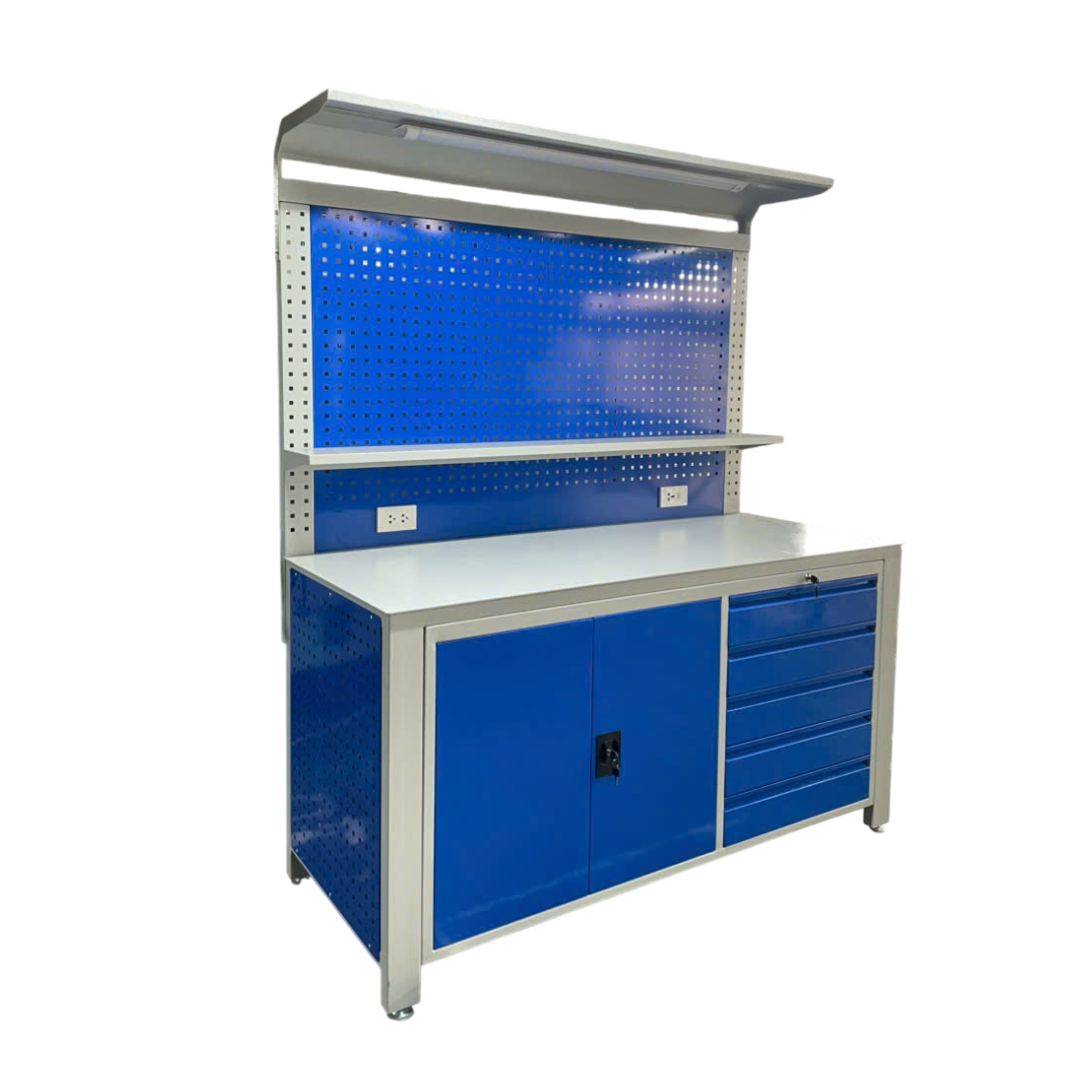 Mặt bàn tùy chọn: Thép dày 5.0mm sơn tĩnh điện: chịu lực cao, phù hợp thao tác cơ khí nặng.
